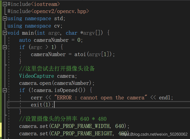 ? ? ? ? 在OpenCV中,通过cv::VideoCapture对象的open()方法可访问摄像头或者相机设备。