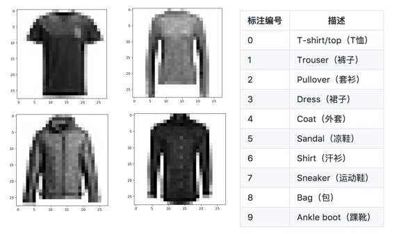FashionMNIST 是图像数据集,它是由 Zalando(一家德国的时尚科技公司)旗下的研究部门提供。其涵盖了来自 10 种类别的共 7 万个不同商品的正面图片。FashionMNIST 的大小、格式和训练集/测试集划分与原始的 MNIST 完全一致。60000/10000 的训练测试数据划分,28x28 的灰度图片。方便我们进行测试各种神经网络算法。 该数据集识别难度远大于原有的MNIST数据集。