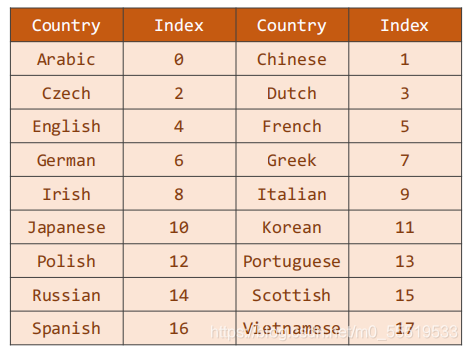 就是说,在拿到一个name后,就能根据name在batch_size中的位置找到country,再进一步找到分类标签idx。