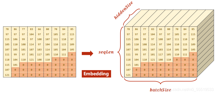 2.用法:经过embadding之后的维度(seqlen, baych_size, hidden_size)