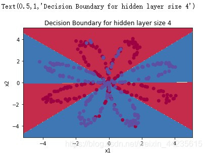 plt.title("Decision Boundary for hidden layer size " + str(4))