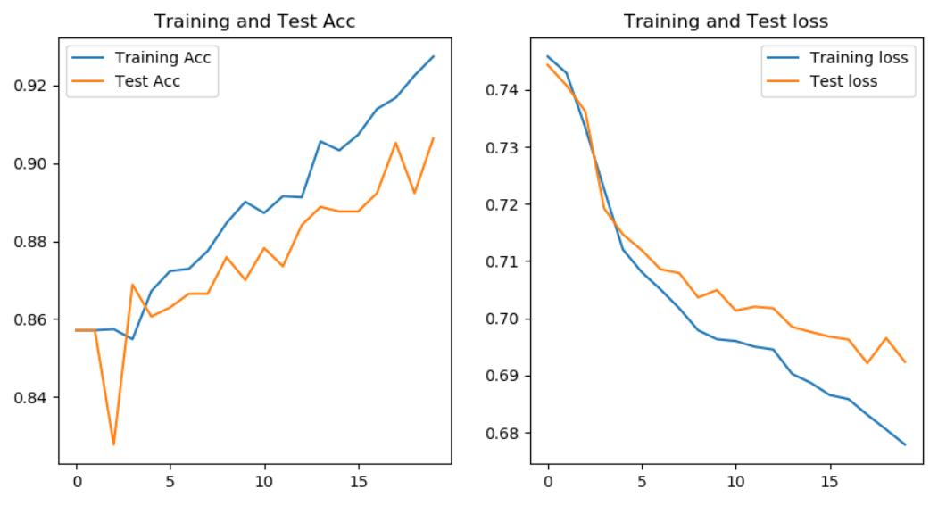 实验结果如下所示:  准确率和loss值都得到了优化。