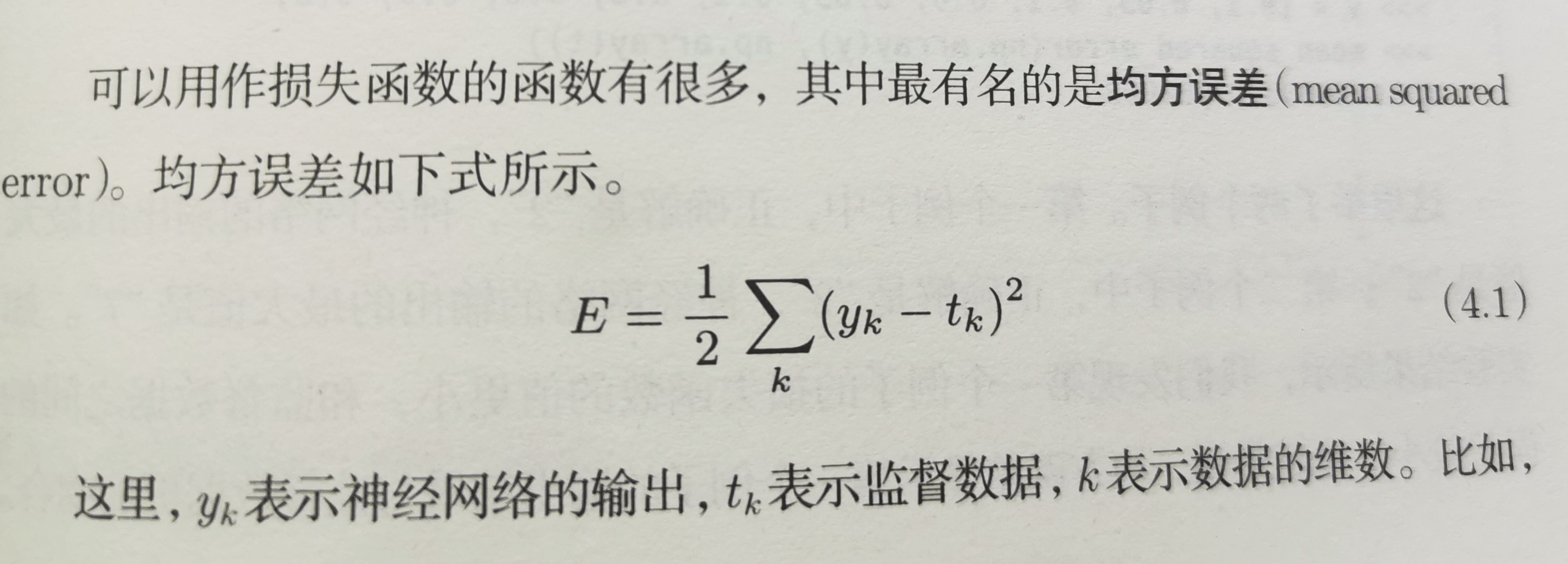 损失函数(loss function) yk,tk(one-hot:正解1 其余0)