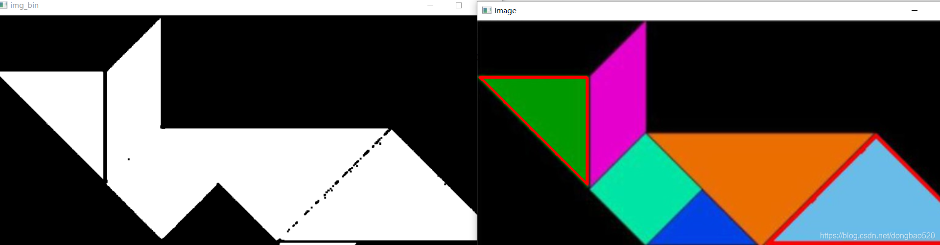 数据输出:  参考来源:https://www.freesion.com/article/6289910425/ 根据周长和面积对一些轮廓进行处理。比如怎么样识别轮廓是一个三角形组成呢?显然就可看它是否有三条边组成的。如果一堆三角形里,还要找一个最大面积的三角形呢? 这时就需要使用OpenCV的函数: arcLength、contourArea、approxPolyDP,相关的函数定义如下: