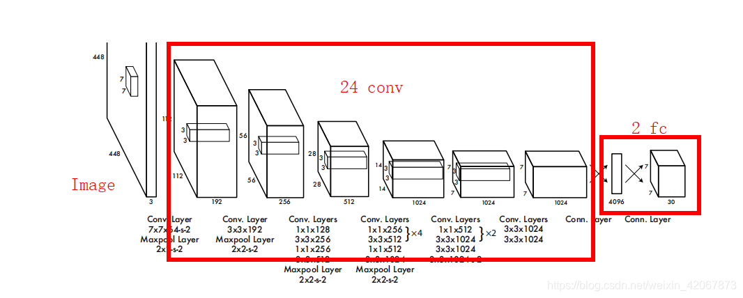此节须知:需要知道的是YOLOV1版本想要预测什么,会给出我们怎样的结果,也即YOLO作为一个回归器,它要给我们预测怎样的值