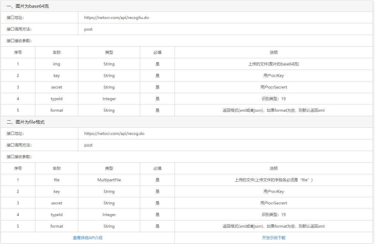 车牌识别api文档