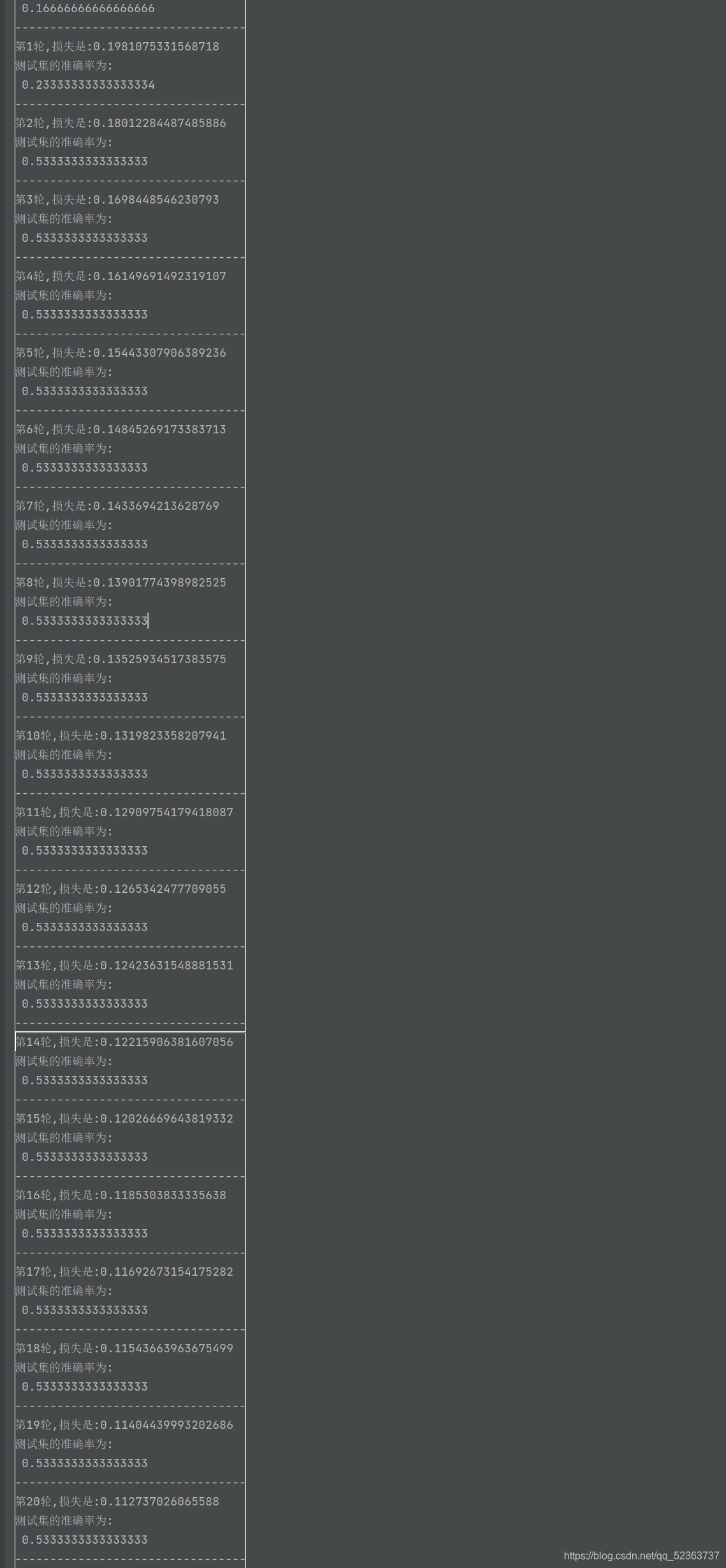 print(f"第{epoch}轮,损失是:{loss_all / 4}")
