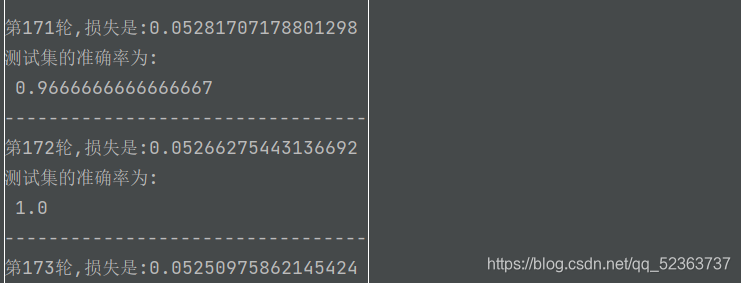 ? ? ? ? 将输入的四个特征与初始化的权重w做矩阵乘法再与偏置b求和(线性回归),会得到三个结果,即属于各个分类的概率,由于第一次的w和b都是随机给出的,所以第一次的估计神经网络完全就是瞎蒙的,之后不断地对w和b求偏导做优化,使其不停的逼近真实值,进而提高模型的准确率,tensorflow里,指定参数对函数求偏导可以用 tf.GradientTape.gradient?这个api