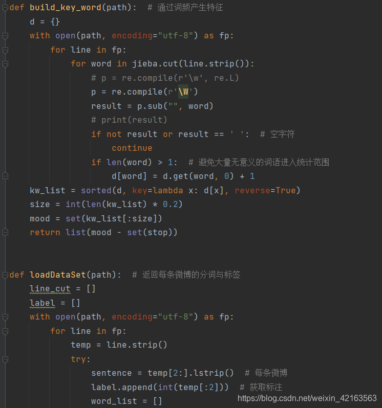 本实验是基于标注的情感分析,故使用结巴分词的精确模式来进行分词。