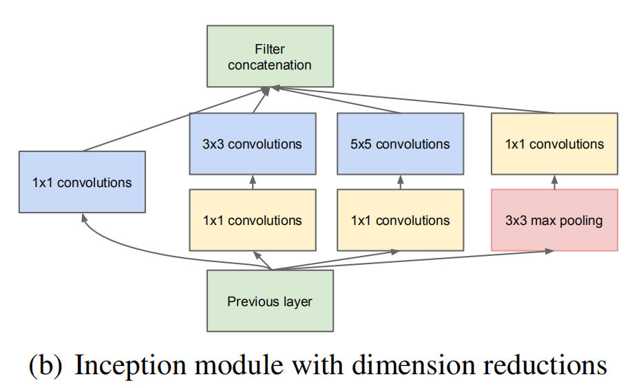 - 上一个问题会导致后面3×3、5×5的计算量很大(因为输入维度很大的话,这两个卷积的卷积参数量会很大)