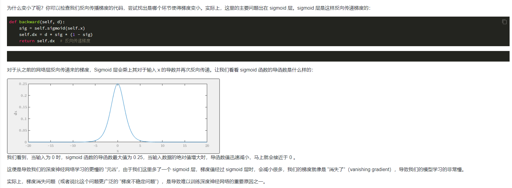 y′的值急剧减小。当存在多层网络层时,该值多次相乘会使结果进一步变小,也就是每次参数变化的步长过小,从而产生梯度消失的问题。