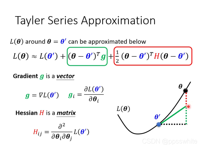 - 用泰勒级数模拟Loss在该点附近的形状