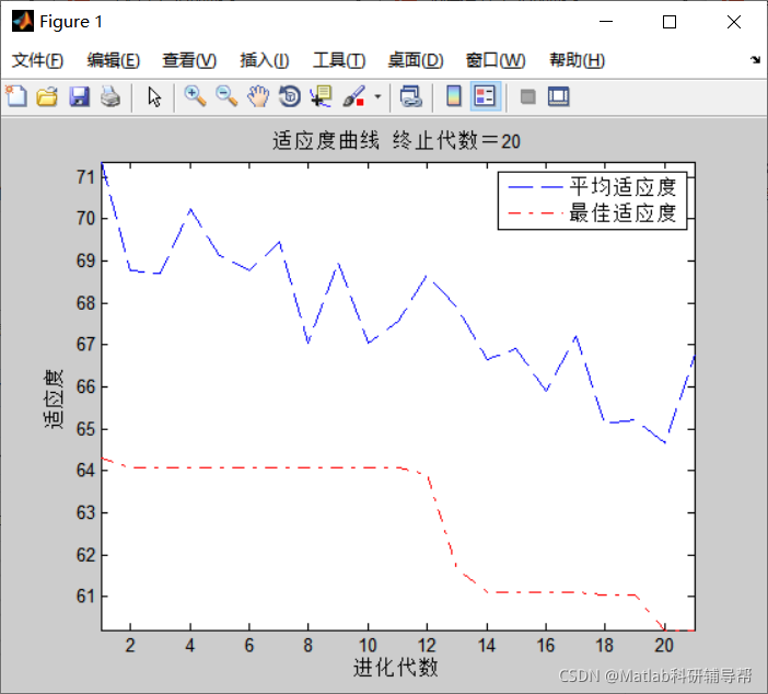 xlabel('进化代数');ylabel('适应度');