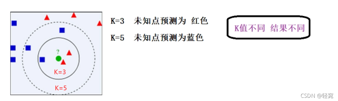 3、设置的K值不同,预测结果不同——如何选择最优的K值
