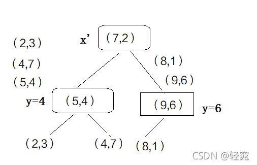 2、将小于中位数的(x,y)作为根节点的左子节点,将大于中位数的(x,y)作为根节点的右子节点,再对两个子节点的y值进行排序和求中位数,比中位数小的放左边,比中位数大的放右边,直到每个子节点只剩一个叶子节点时停止?