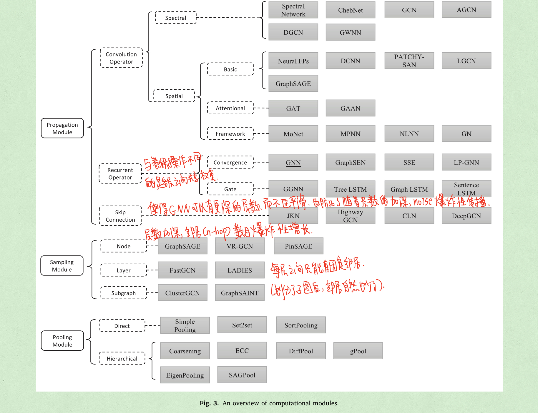 sampling module:当图太大了的时候就需要采样操作,采样模块经常和propagation module组合。