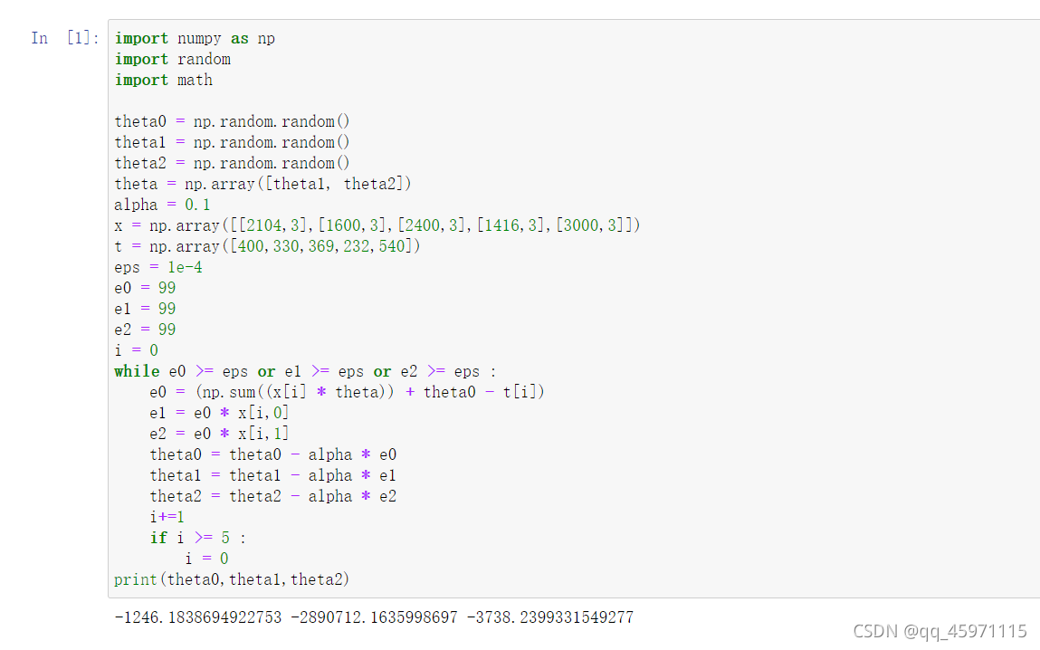 e0 = (np.sum((x[i] * theta)) + theta0 - t[i])