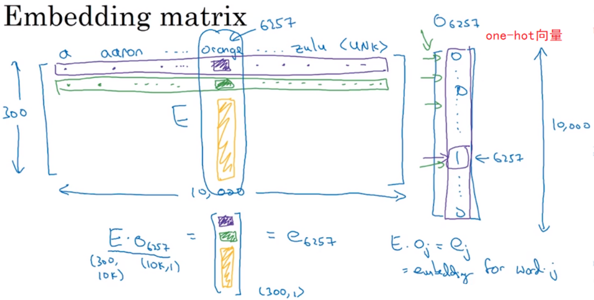 我们将随机地初始化矩阵,然后使用梯度下降法来学习这个300×10000 的矩阵中的各个参数,然后取出你需要的列