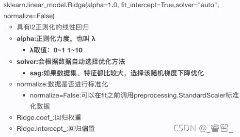 岭回归:带有L2正则化的线性回归。(为了解决过拟合)