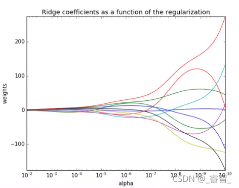 ?(横坐标:正则化力度;? ? ? ? 纵坐标:权重系数)