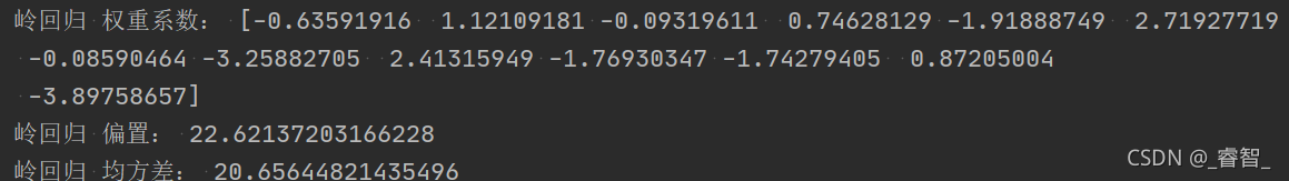 print('岭回归 权重系数:', estimator.coef_)