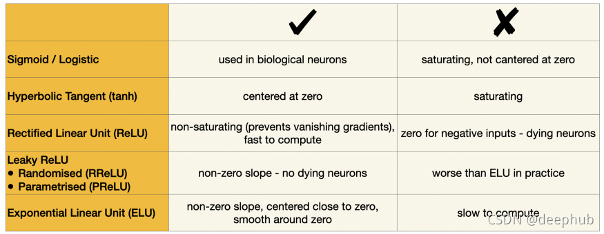 以下是为方便起见整理的经典激活的对比: