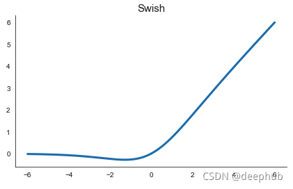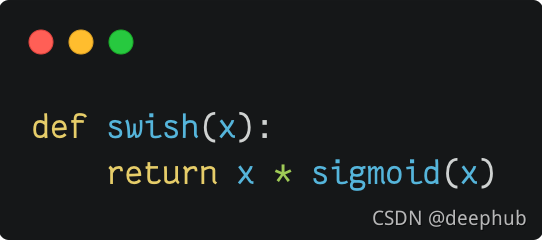 Swish 激活函数,由 Ramachandran 等人于 2017 年 Google Brain 上的发现。 非常简单:它只是将输入乘以自己的 sigmoid。 它的形状与 GELU 函数非常相似。
