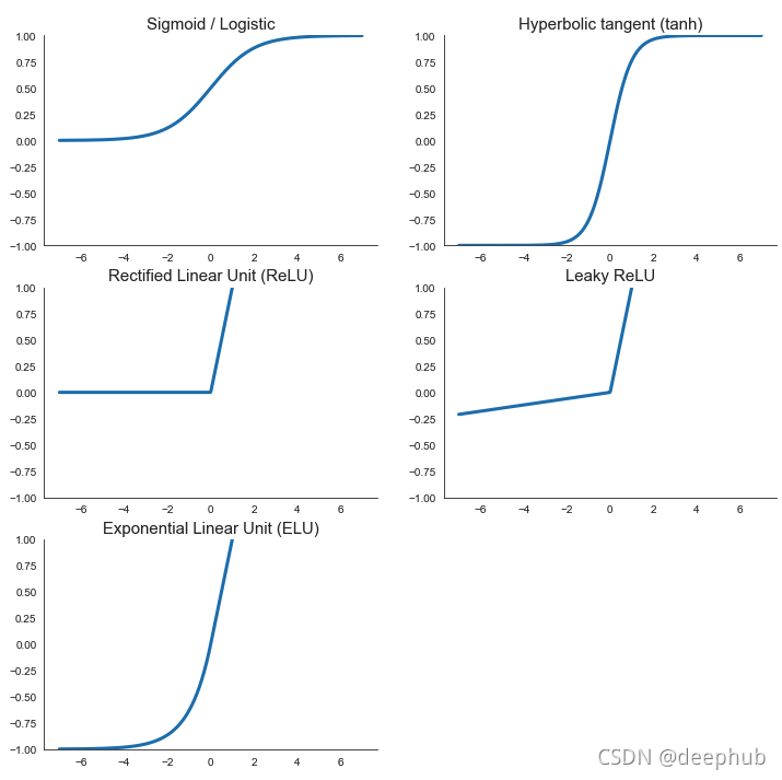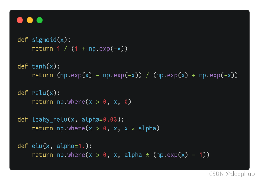 让我们快速浏览一下五个最常用的激活函数。 在这里,它们是使用 numpy 实现的。