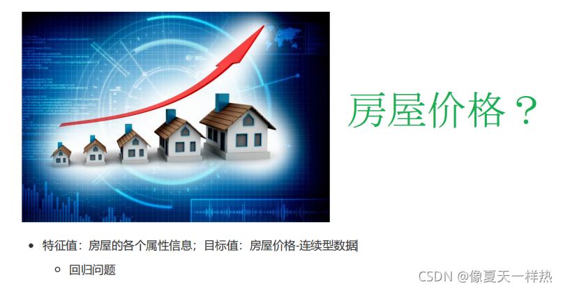 从历史数据当中获得规律?这些历史数据是怎么的格式?? ?1.2?数据集构成结构:特征值+目标值 例子:房屋价格的预测