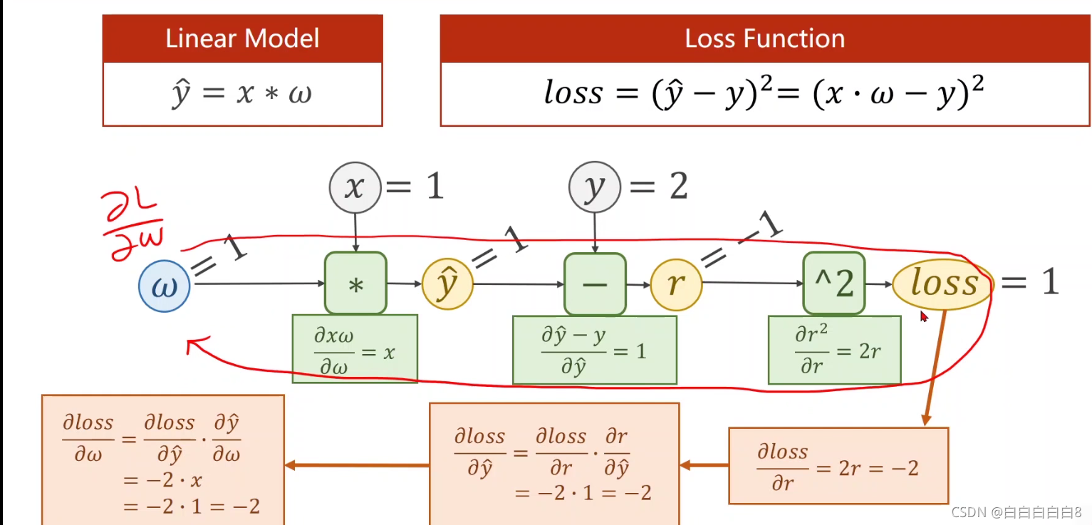 ????????先进行前馈运算(forward),然后反向传播算出损失函数对权重的倒数(即梯度),进而可以进行更新权重w。