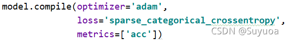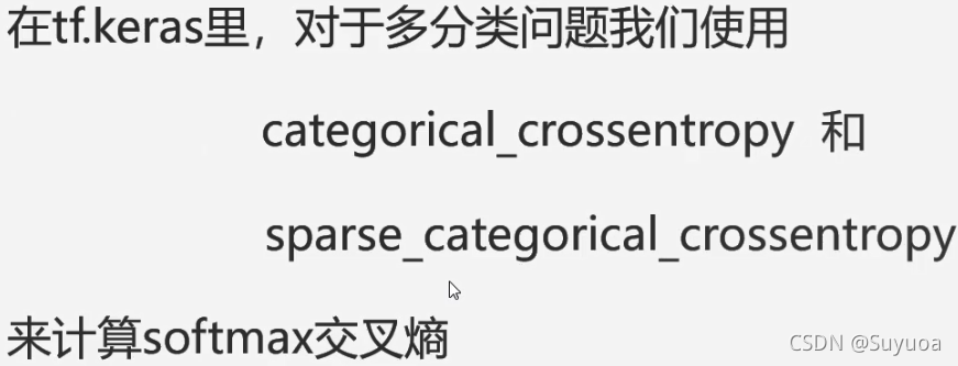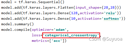 上面这是两个损失函数,当我们使用0,1,2,3这种数字做标签时,我们使用sparse_categorical_crossentropy,如果label使用独热编码我们使用categorical_crossentropy