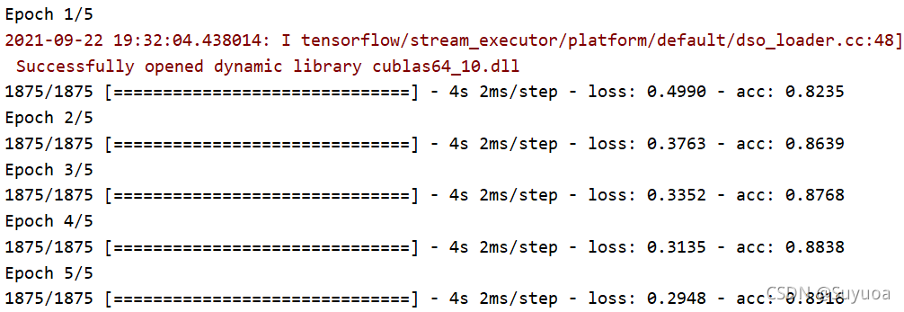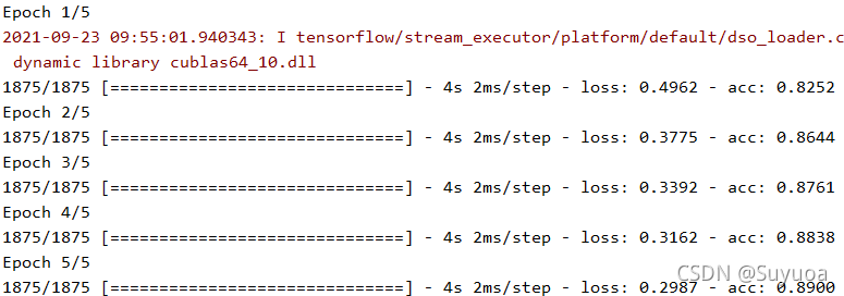 优化器使用adam,loss值使用sparse_categorical_crossentropy(标签是数字),我们在训练过程中检测其正确率