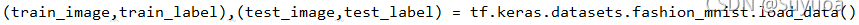 fashion_mnist是tensorflow中自带的数据集,它分为四个部分,分别为train_image(训练图像),train_label(训练标签),test_image(测试图像),test_label(测试标签)