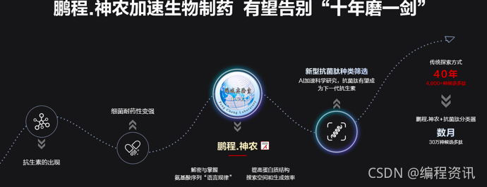 抗生素的出现让人类的寿命延长了数十年,然而,由于细菌的耐药性变强,人类迫切需要寻找到下一代抗生素——抗菌肽(作为一种可以有效杀灭耐药性病原菌的肽类物质)。MindSpore团队与鹏城实验室等团队合作开发的鹏程。神农平台具有强大的氨基酸序列生成能力,其利用鹏程。盘古大模型完成预训练再通过finetune生成新的氨基酸序列,有望极大提升新型抗菌肽的发现速度。