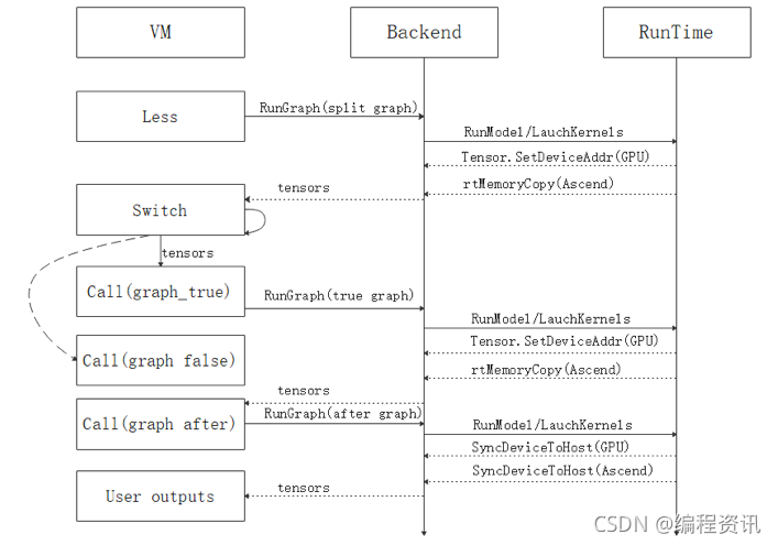 我们分别在8卡、16卡、32卡昇腾设备上验证了优化器异构和专家并行对训练模型规模提升的效果,如下图所示,使用优化器异构基本都能达到3倍的模型规模提升,在8卡上可以跑到612亿参数量,16卡上可以跑到1210亿参数量,32卡上可以跑到2420亿参数量的模型规模。 1.2.4?? ?超分辨率图像自动并行,解决遥感影像“大幅面、多通道”的处理难题超分辨率图像往往非常大,以遥感图像为例,分辨率是4*30000*30000,一张图片约14GB,单卡受限于内存无法完成计算,需要对图片进行多机多卡的并行处理。在数据处理的过程中,支持对大幅面遥感影像的解码和数据增强,针对单样本尺寸大的特点,框架根据集群规模的大小,自动将大幅面数据切分成合适的大小(如切分H、W维度),并分发到不同的计算节点,以解决显存不足问题。在训练和推理过程中,由于网络将对图片进行大量的卷积等计算,而图片的H、W维被切分后,对每个计算节点来说,可能有部分边缘特征信息存储在其他节点上,框架将自动识别边缘特征信息的分布情况,采用相邻节点交换等通信技术对分布在周边节点上的特征信息进行整合,最终保证网络执行结果无精度损失。 1.3?? ?推出亲和算法库——MindSpore Boost 众所周知,训练是一个复杂的计算过程,端到端训练包含很多步骤。如下图所示,深度学习训练过程本身是个高冗余的计算过程,需要围绕多个模块分别进行计算优化,最终实现不同AI场景下端到端训练的效率优化。端到端训练要素在MindSpore 1.5版本中,华为中央媒体技术院与MindSpore共同推出亲和算法库MindSpore Boost 1.0,目标都是为了在不同的AI场景下,保持用户训练精度的同时,为用户提供高效的训练体验,包含数据、网络、通信、训练策略和优化器等维度的加速算法,架构图如下所示。 MindSpore Boost 1.0架构除了亲和算法外,我们还提供简易模式,进行算法封装,为用户提供三种不同层级的选择,即O1/O2/O3,随着层级的递增,其加速比例增加,这种模式下,用户无需了解算法细节,仅需要在调用Model的训练入口时,打开加速开关和选择加速层级即可,使用方法如下图所示。简易模式使用示意 1.4?? ?集群调试调优支持大规模分布式训练大模型是当前深度学习领域研究的热点之一。模型的参数量和训练数据集的大小均以指数级的规模快速增长。以MindSpore和鹏城实验室共同发布的鹏程·盘古模型为例,模型的参数量达到了2000亿,使用2K集群历时数月进行训练。在这样的背景下,模型性能调优对减少训练时间和成本有着至关重要的意义。 MindSpore 1.5版本发布集群调试调优工具链,针对K级集群性能数据能够做到一键收集,提供集群慢节点/慢网络、计算通信比、内存热力图等多维性能分析与可视化能力,结合智能集群调优建议,达成小时级性能瓶颈定位。 1.4.1?? ?集群迭代&通信性能分析以集群视角汇总了多项性能关键数据,并对多卡数据提供了排序、分析功能,用户可快速的从K级集群中找到慢节点、慢链路等,并从集群页面跳转到对应的单卡页面,进一步定界节点慢的原因,找到最小性能瓶颈点。 1.4.2?? ?计算通信比分析集群并行训练过程中,通信是影响性能的重要因素,计算通信比指标可以帮助开发者分析网络切分策略是否合理以及是否有优化空间。如下图所示,非overlap 87ms是开发者可关注的性能提升空间。查看文档:https://www.mindspore.cn/mindinsight/docs/zh-CN/r1.5/performance_profiling_ascend_of_cluster.html 1.5?? ?MindSpore Lite新增对外开放机制,支持Hi3516/3549芯片以及NVIDIA GPU的对接此版本中,MindSpore Lite新增了两个对外开放的接入机制:支持南向自定义算子接入,支持第三方AI框架通过Delegate机制接入。南向自定义算子的接入功能,支持用户自定义图优化能力,实现在离线阶段生成特定硬件支持的模型文件,同时支持特有硬件算子接入MindSpore Lite Runtime,实现MindSpore Lite在第三方硬件上高性能推理,当前我们已经接入Hi3516/3559芯片,使机器视觉AI应用开发更加便捷。第三方专用AI芯片南向接入MindSpore Lite 查看文档:https://www.mindspore.cn/lite/docs/zh-CN/r1.5/use/register_kernel.html Delegate机制,支持有构图能力的第三方AI框架接入MindSpore Lite,充分利用外部AI框架提供的特有硬件算子库或者更优越的推理性能。采用Delegate实现了 Lite+其他AI框架的异构执行,保持了离线模型一致性,当前我们已经通过Delegate机制支持了Kirin NPU以及NVIDIA GPU。通过Delegate接入MindSpore Lite 查看文档:https://www.mindspore.cn/lite/docs/zh-CN/r1.5/use/delegate.html 1.6?? ?灵活表达:完善控制流,支持多种控制语句混合编写,支持循环自动微分在此版本中,在控制流语法的使用方面我们提供以下支持与优化: 1)进一步强化了对于静态图控制流的支持,通过使用虚拟机机制执行控制流算子,解决了控制流非尾递归场景的图递归执行问题,实现了对循环求反向的支持。同时,我们扩大了控制流的语法支持范围,目前控制流已可以支持if、while、for、break、continue表达。一个if语句基于虚拟机机制的控制流执行流程如图所示: