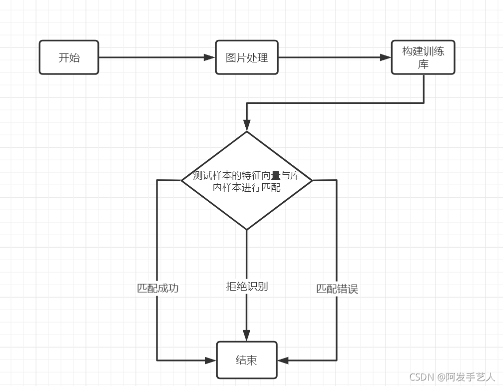 也许乍一看看不明白,我在这里解释一下,明白的可以绕过。我们这里假设1,2,3(注意,他们的样本都有多个)为训练集,d为测试样本。匹配时匹配到d与1距离最小且只与1距离最小,(可能与多个1的样本距离最小或者只有一个)那么匹配成功;匹配时匹配到d与1和2的某个样本都有最小距离,那么拒绝匹配;匹配时匹配到d(假如d是1的样本)与2有最小距离,那么识别错误。