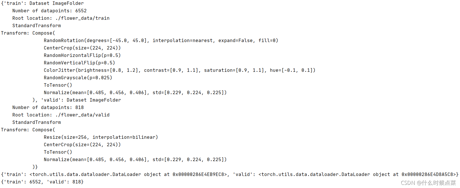 data_transforms = { #data_transforms中指定了所有图像预处理操作