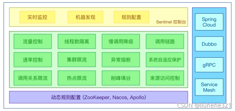 - 根据预设的规则,结合对资源的实时统计信息,对流量进行控制。同时,Sentinel 提供开放的接口,方便您定义及改变规则。