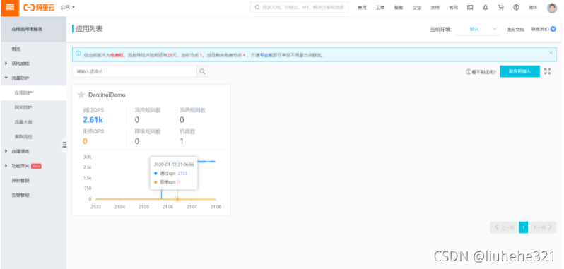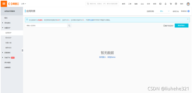 在控制台左侧导航栏选择“流量防护”中的“应用防护”,会弹出应用列表。
