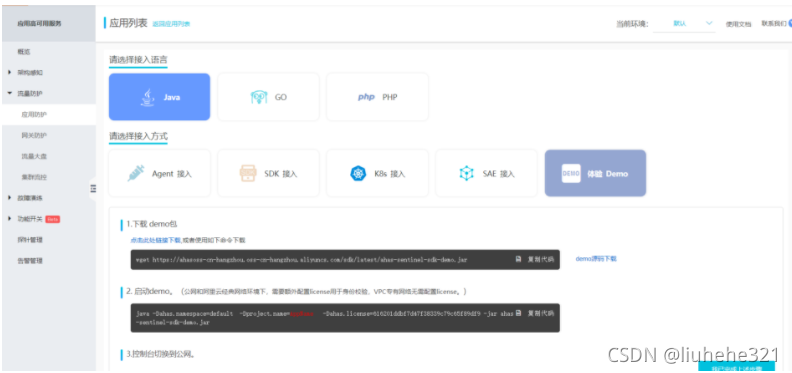 公网Demo下载地址:https://ahasoss-cn-hangzhou.oss-cn-hangzhou.aliyuncs.com/sdk/latest/ahas-sentinel-sdk-demo.jar