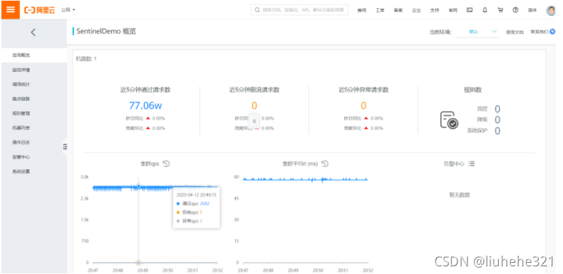 - 完备的实时监控:Sentinel 同时提供实时的监控功能。您可以在控制台中看到接入应用的单台机器秒级数据,甚至 500 台以下规模的集群的汇总运行情况。