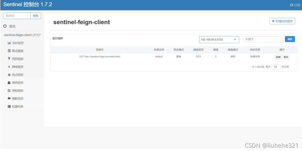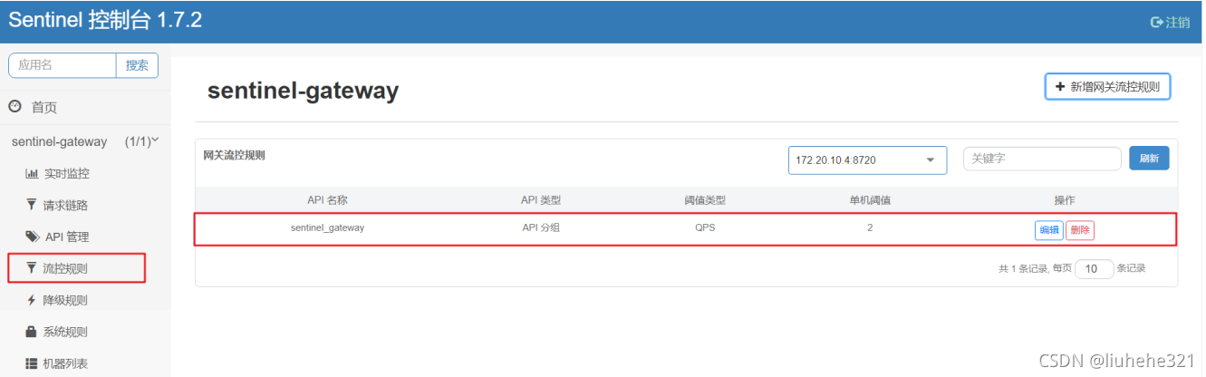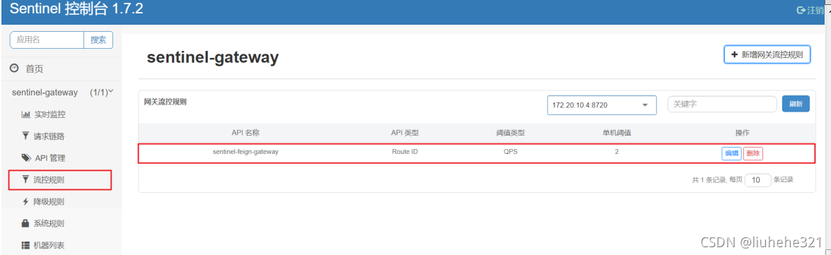 @Component public class SentinelConfig { ? ?@PostConstruct ? ?public void init(){ ? ? ? ?//获取请求来源ip地址 ? ? ? ?WebCallbackManager.setRequestOriginParser(new RequestOriginParser() { ? ? ? ? ? ?@Override ? ? ? ? ? ?public String parseOrigin(HttpServletRequest httpServletRequest) { ? ? ? ? ? ? ? ?return httpServletRequest.getRemoteAddr(); ? ? ? ? ? } ? ? ? }); ? } }