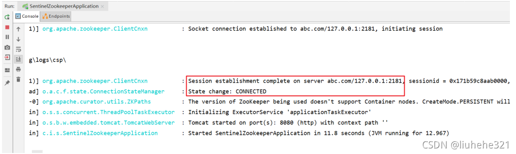 启动项目,查看Idea打印台日志,查看项目是否连接了zookeeper。