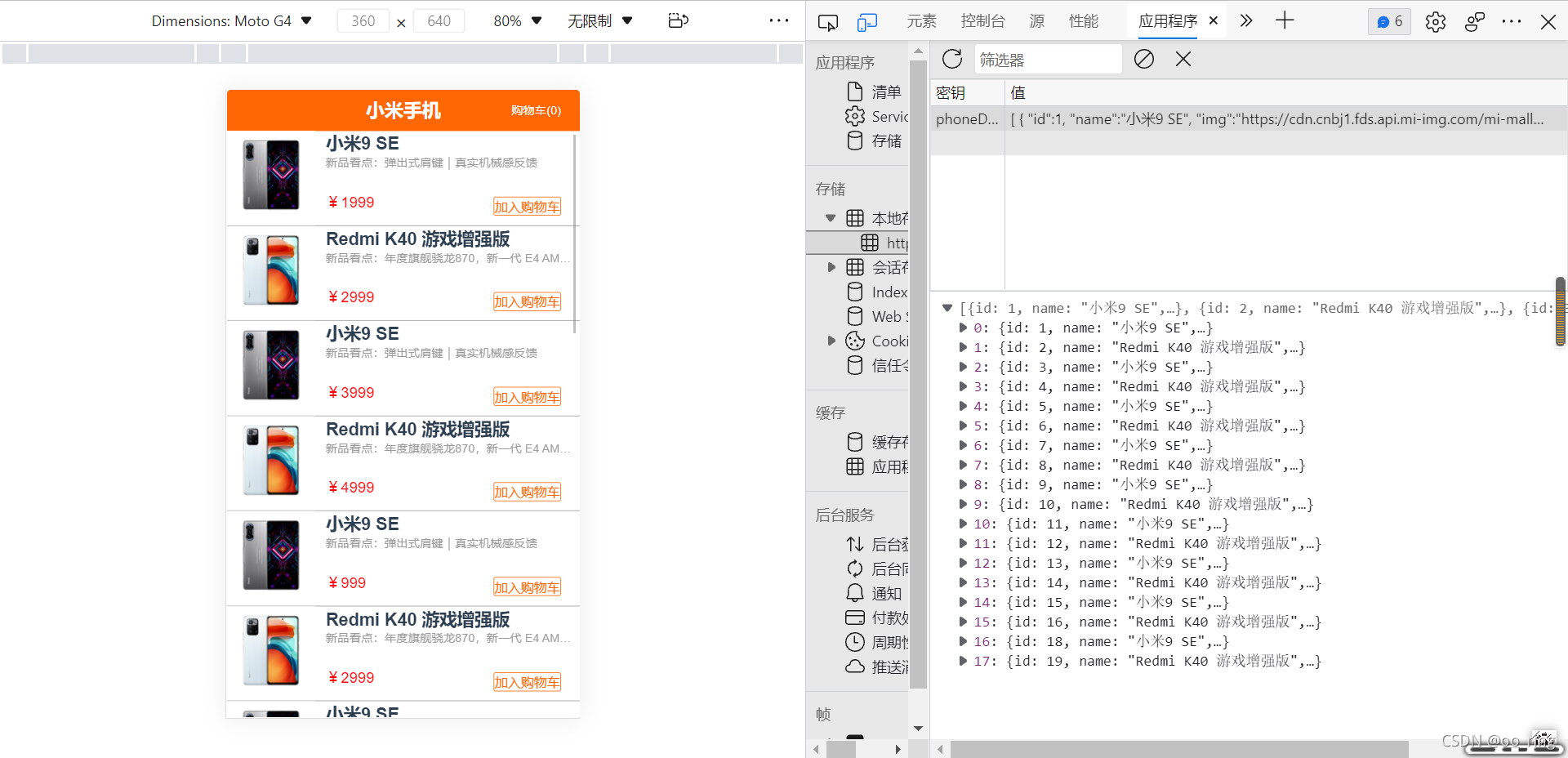 左上角的数据是实时响应的,当点击加入购物车时,数量会依次增加。
