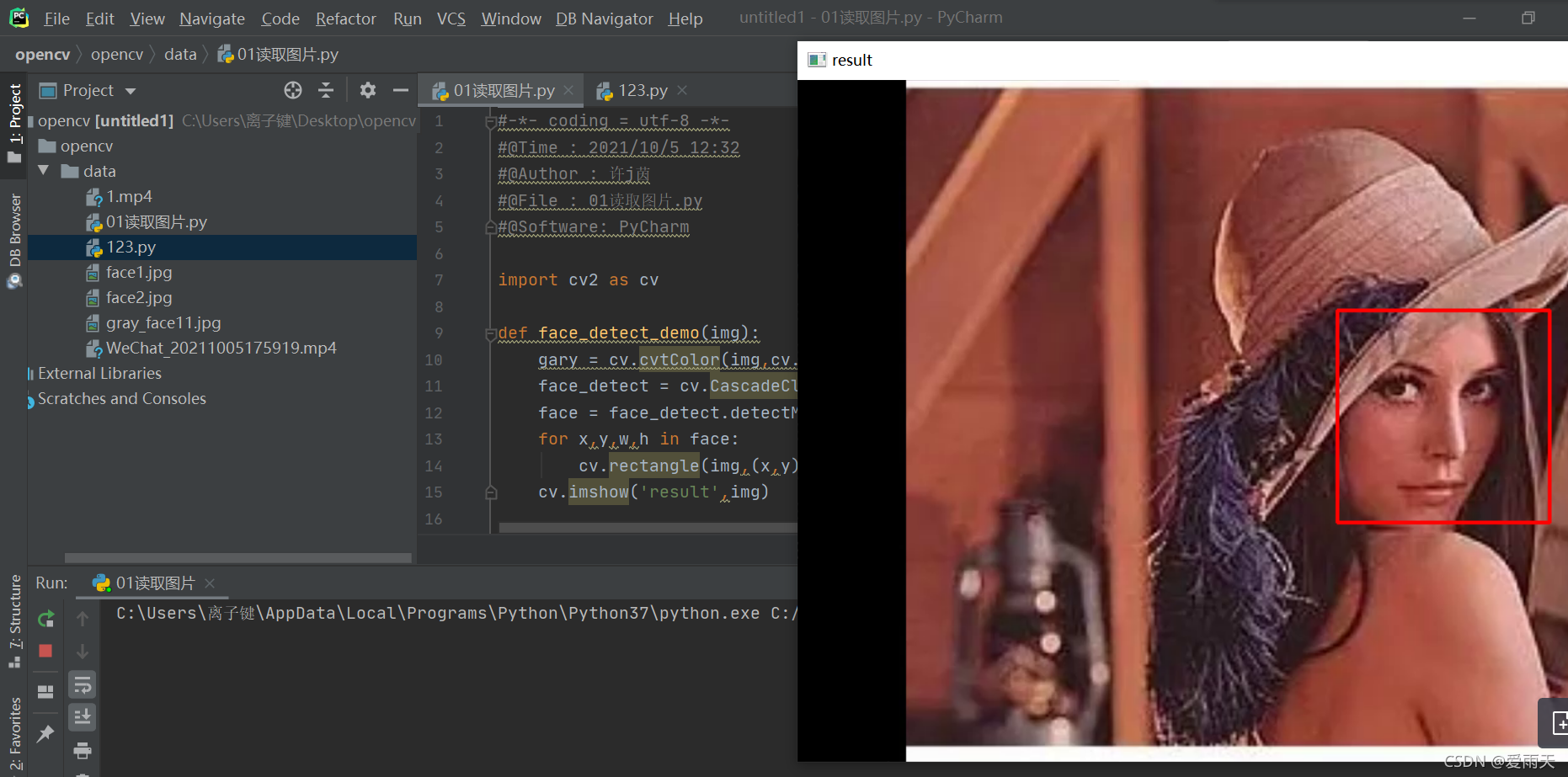 face_detect = cv.CascadeClassifier('D:/BaiduNetdiskDownload/OPENCV(WIN)/opencv/sources/data/haarcascades/haarcascade_frontalface_default.xml')