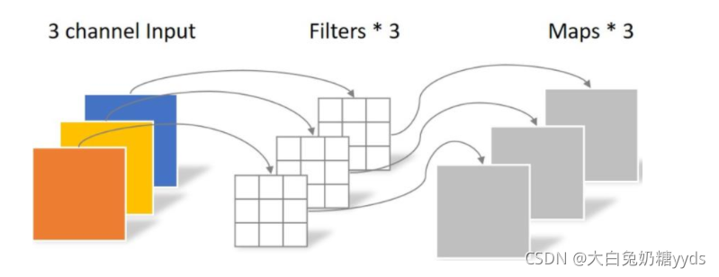 ? ? ? ? 与标准卷积的区别:标准的卷积运算可以在一个步骤中将输入滤波并组合成一组新的输出。深度可分离卷积将其分为两层,一层用于滤波,另一层用于组合。标准卷积的花费:DK·DK·M·N·DF·DF(DK:卷积核大小,M输入通道数,N输出通道数,DF输入数据宽度)。MobileNet模型使用深度可分离卷积来打破输出通道数量和内核大小之间的相互作用,其花费为DK·DK·M·DF·DF+M·N·DF·DF。