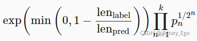 score = math.exp(min(0, 1 - len_label / len_pred))