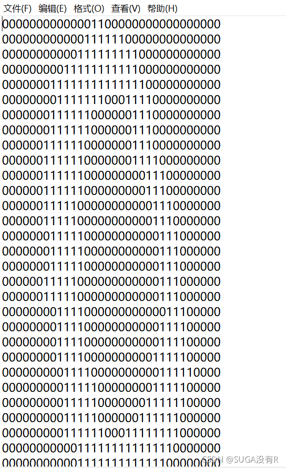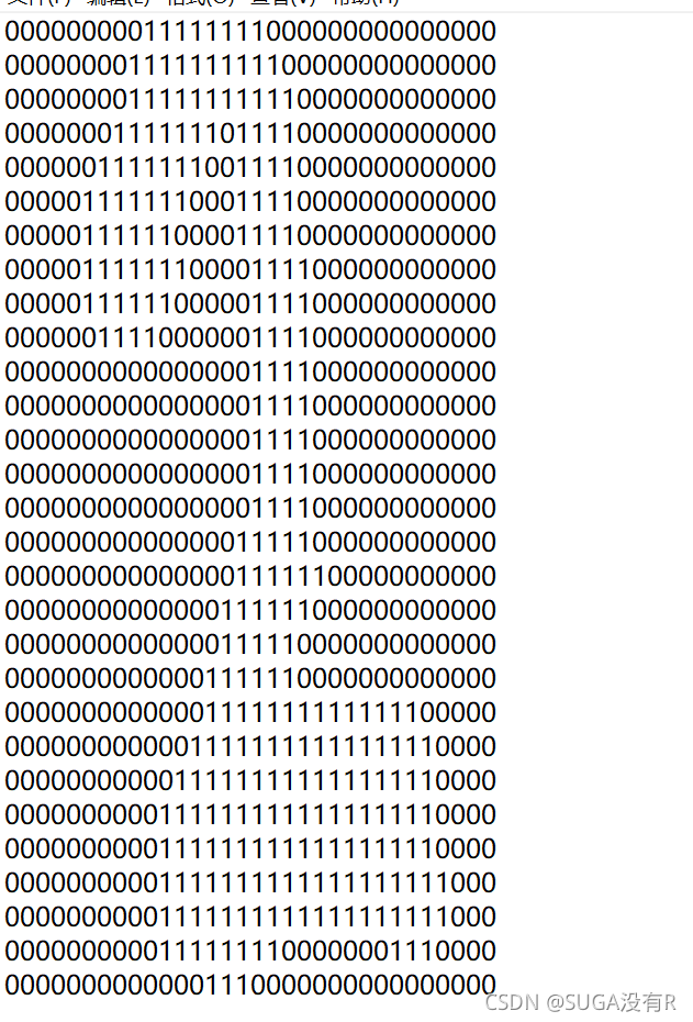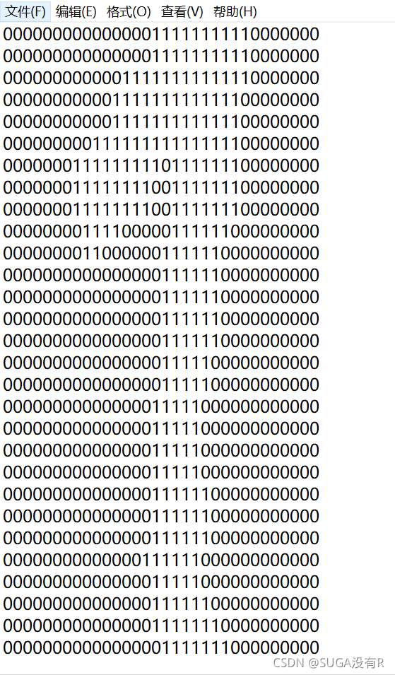 需要识别的数字已经用图像处理软件处理过。如下图所示,具有相同的像素和形状:都是32像素×32像素的黑白图像。黑白像素分别由0和1表示. 然后再转换成文本存储形式存储。例如,如下三张图是直接从TEXT文档中截取的数字0,1,2