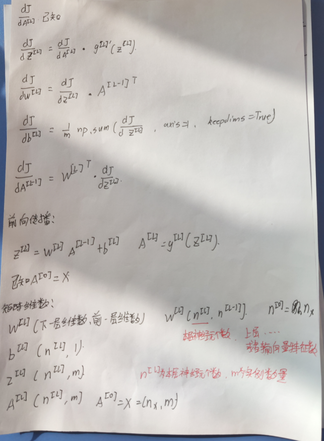在吴老师下一周的课程中有对前向传播和反向传播求导的结论,如图所示: