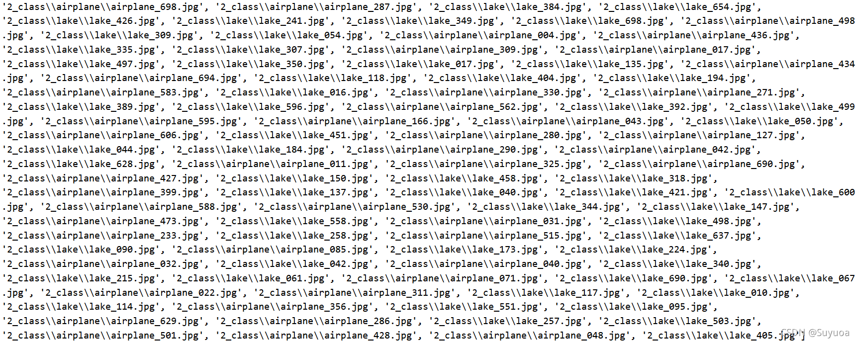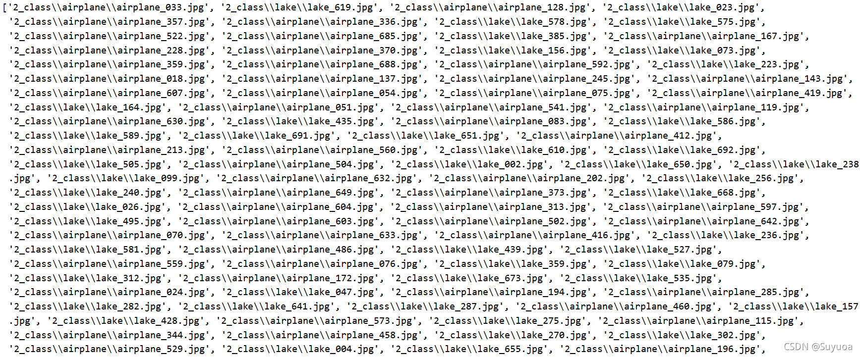 我们可以发现all_iamge_path的前面都是飞机,后面都是湖泊,所以我们在这里要进行乱序以达到更好的训练效果,此处我们使用ramdom.shuffle()